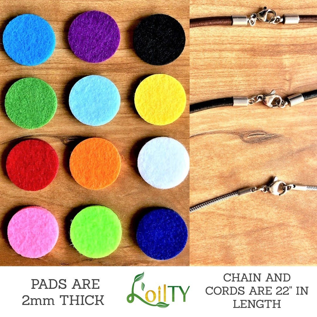 Can be worn as a stylish necklace or used as an essential oil diffuser by applying 2-3 drops of essential oil to the pads (oils not included)