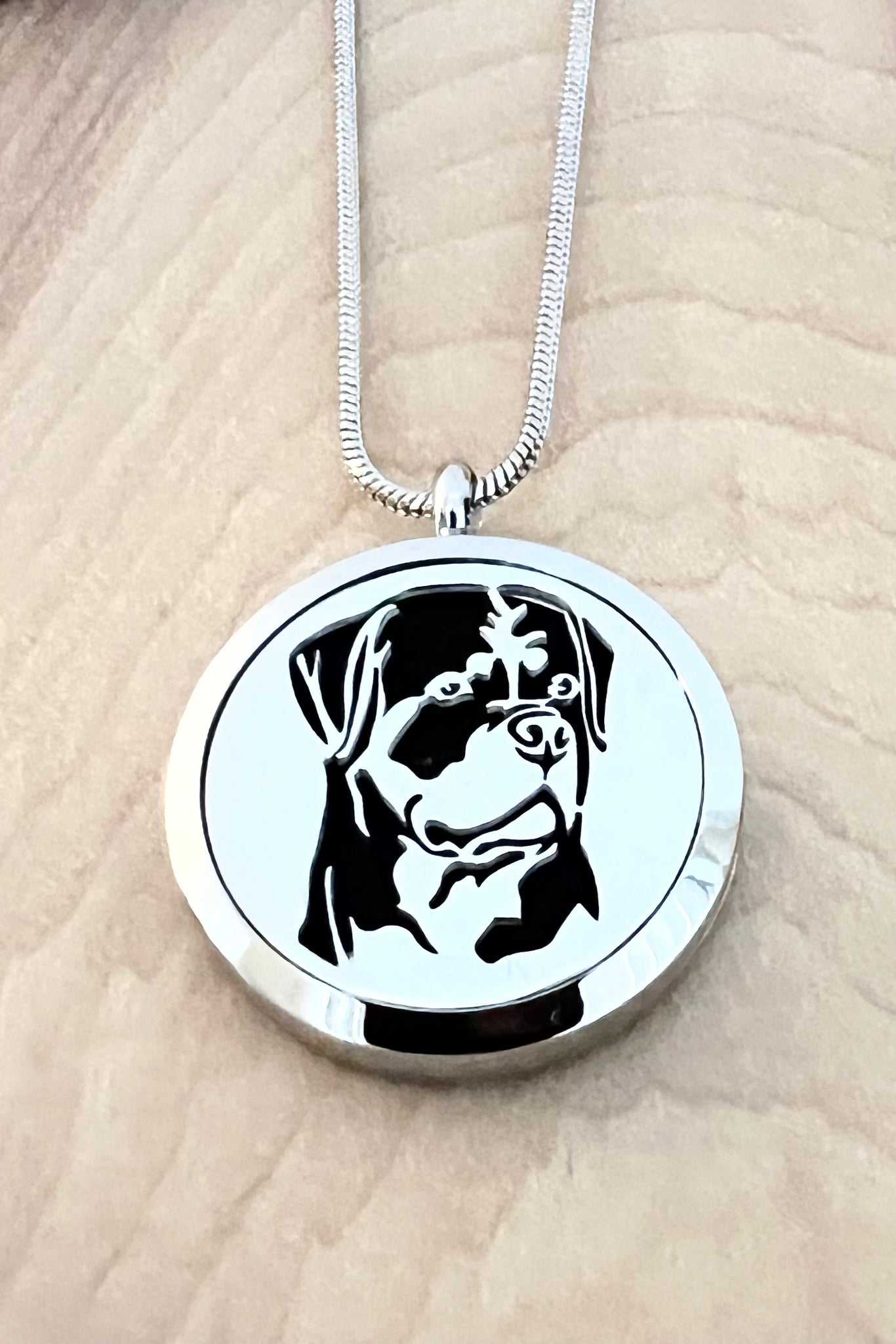 Choice of 22" stainless steel chain, brown leather cord or black leather cord